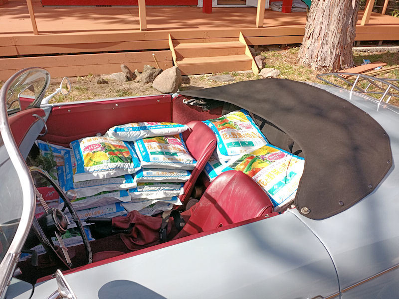 ▲ 最後に近くのDIY店から花壇用土を260L買いました。また私のカワイイ「軽トラック」で家に持って帰れました。