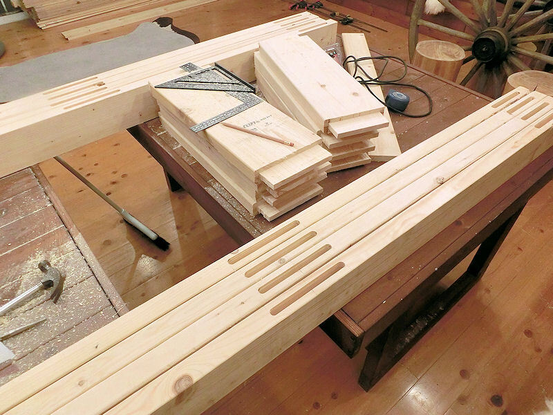 ▲ まずは2x6と2x8のパインで長さを計算して、切りました。